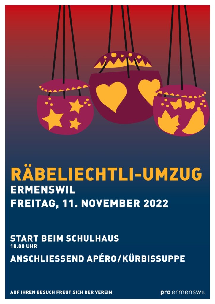 11.11.2022 Räbeliechtli-Umzug Wir freuen uns auf die wunderschöne Atmosphäre, singende Kinder und auf eine wärmende Suppe.